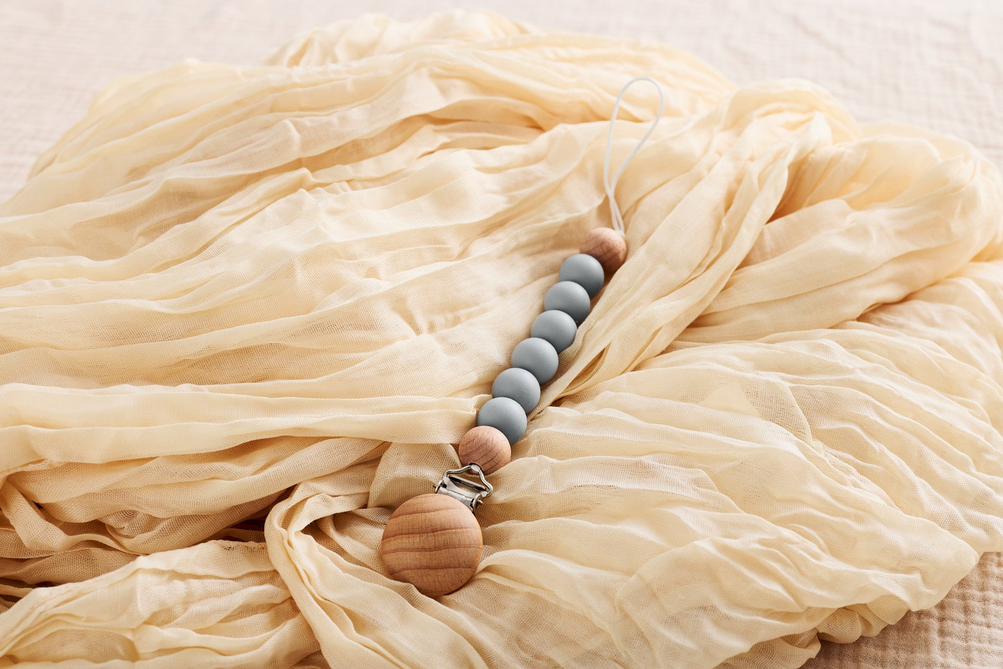 En mjuk babyborste i naturligt trä och skonsamma borst – perfekt för känslig babyhårbotten.